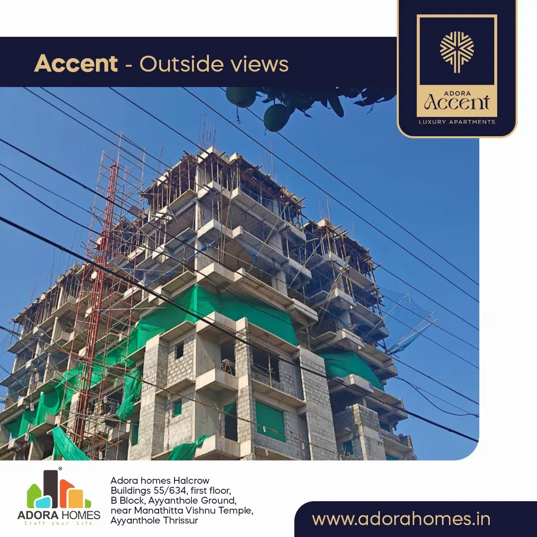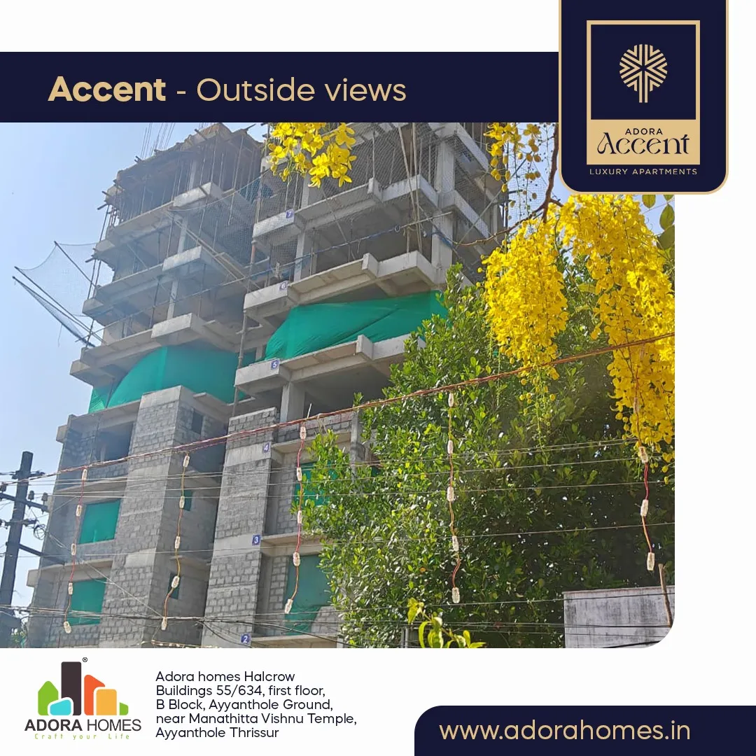 Adora Homes, one of the finest builders in Thrissur, presents Adora Accent. Situated in central Thrissur, Adora Homes prides itself in creating structures that focus on both value and the customer's experience. Adora Accent which is located in the highly rated and sought after Ayyanthole area has a specially tailored collection of 2 and 3 BHK luxury apartments made for individuals and families with a modern lifestyle.